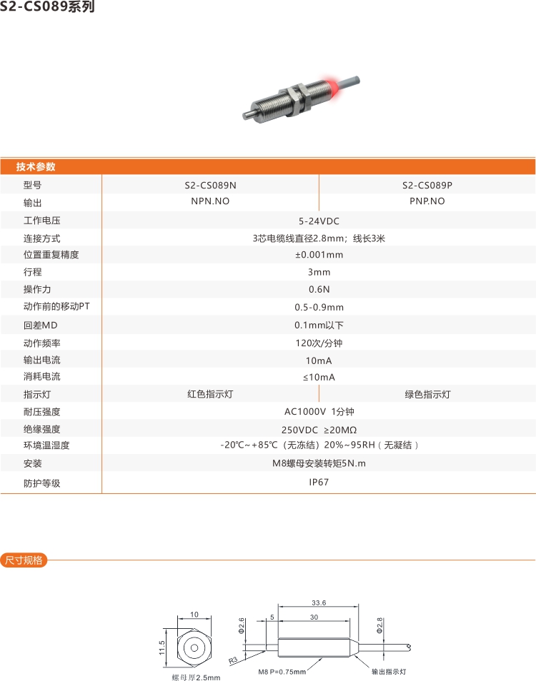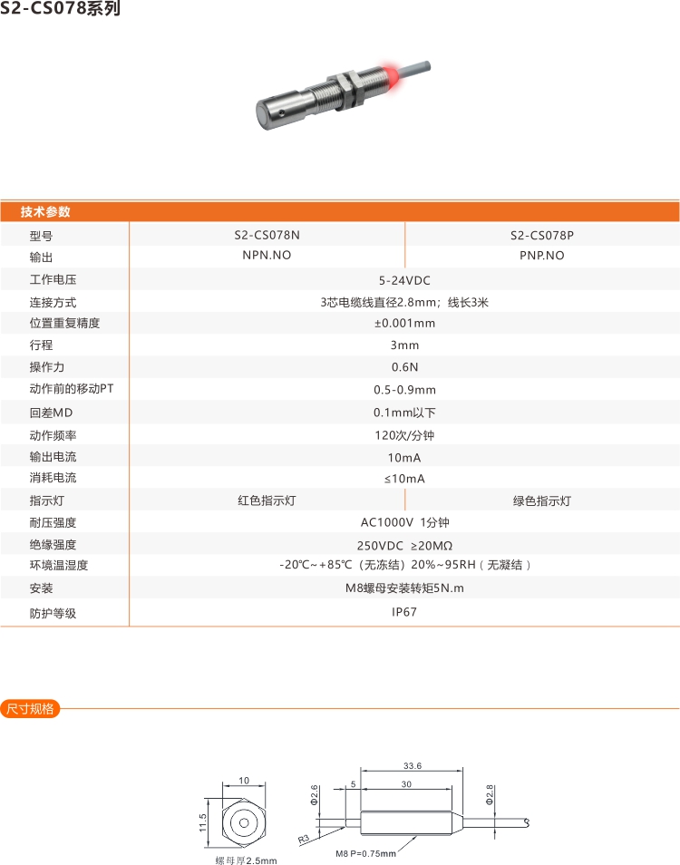 ECOTTER 接觸傳感器S2-CS系列 具有360°明顯指示燈