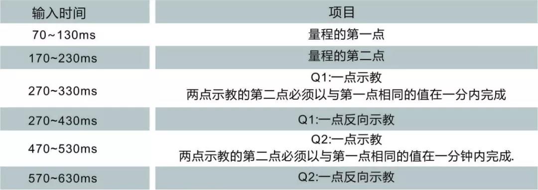 遠(yuǎn)程功能設(shè)置是通過(guò)外部控制輸入進(jìn)行設(shè)定,根據(jù)外部控制輸入的高電平時(shí)間不同,對(duì)不同的功能進(jìn)行設(shè)定。具體功能的設(shè)定時(shí)間如下: