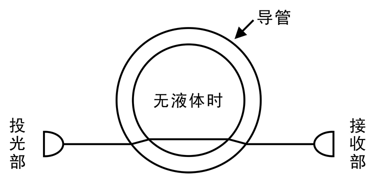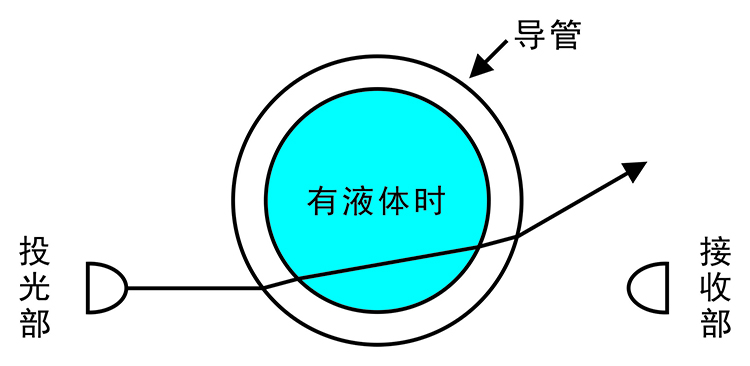 ②如導(dǎo)管內(nèi)有液體,投光部發(fā)出的光將穿透液體,不進(jìn)入受光元件。(遮光狀態(tài))