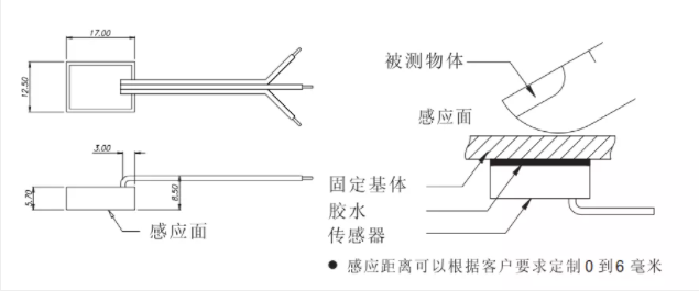 這款傳感器的體積是比市面上普通的傳感器體積要小上許多,長(zhǎng)17mm,寬12.5mm,高5.7mm。整個(gè)體積大小和手指差不多。