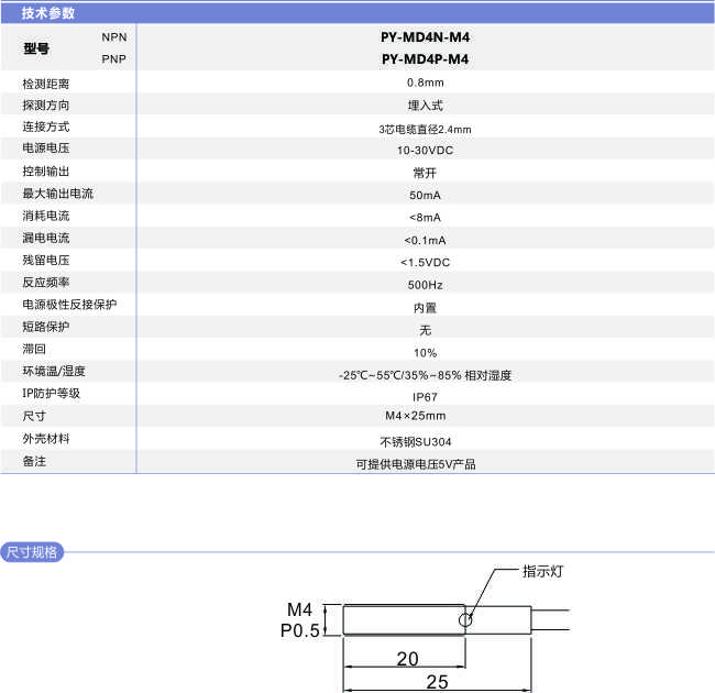 M4 圓柱型接近開關PY-MD4-M4