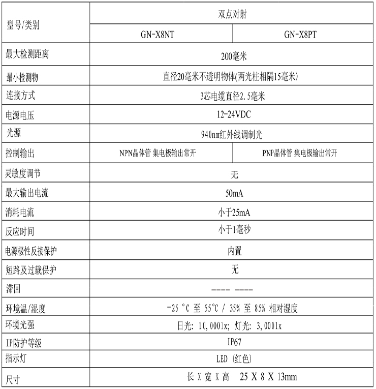 方型光電開關GN-X8