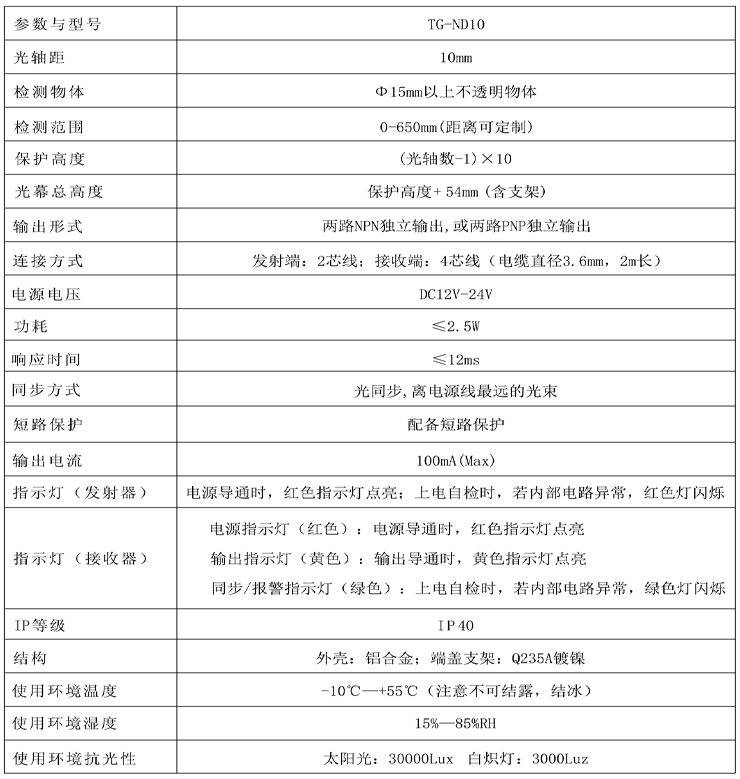 首頁 > 產品中心 >>傳 感 器 >> 安全光幕 >> 四級安全光幕超薄型TG-ND-10系列