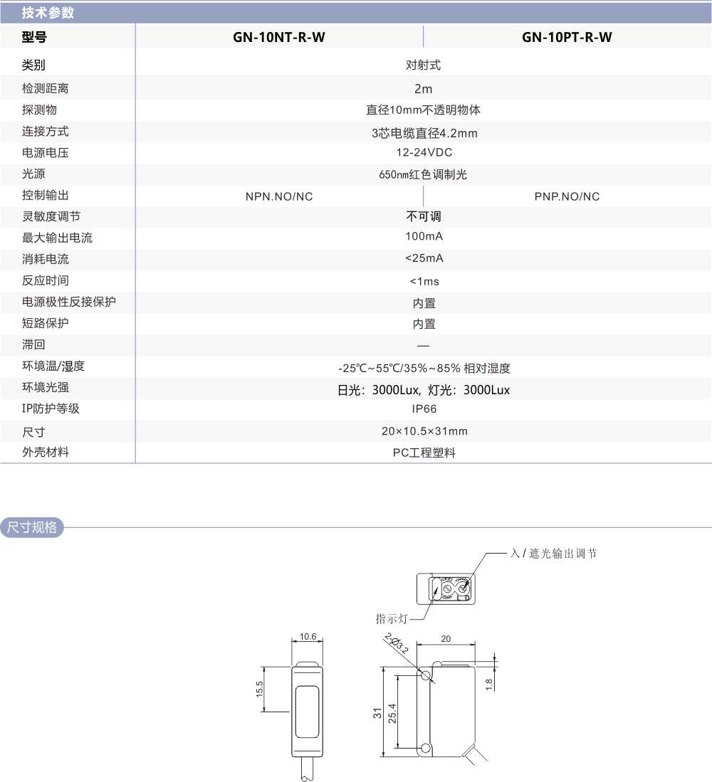 擴(kuò)散光對射光電開關(guān)GN-10T-R-W